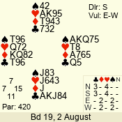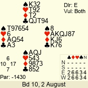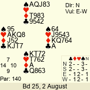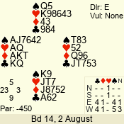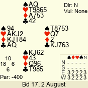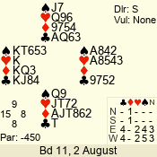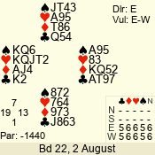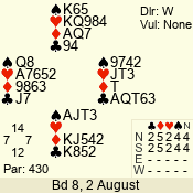| Con | Dc | Res | Score | Ld | Pairs | Rd | Tbl | | 3 N | S | +1 | 430 | 5 | 04 - 01 | 4 | 4 |