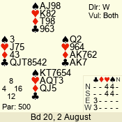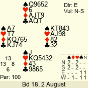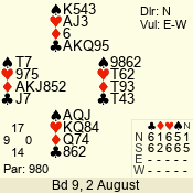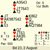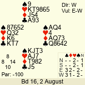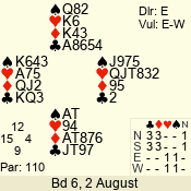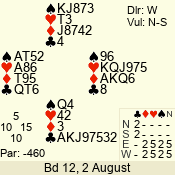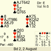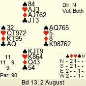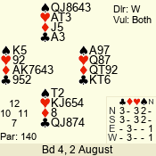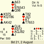 | Con | Dc | Res | Score | Ld | Pairs | Rd | Tbl | | 2 N | N | -1 | 0 | 2 | 04 - 02 | 3 | 4 |
