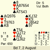 | Con | Dc | Res | Score | Ld | Pairs | Rd | Tbl | 5  | S | = | 650 | 3 | 01 - 03 | 4 | 1 |