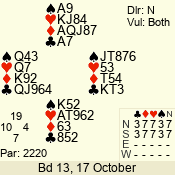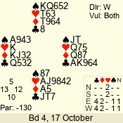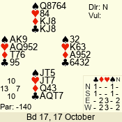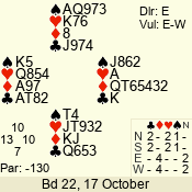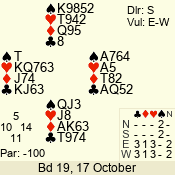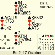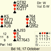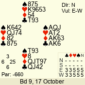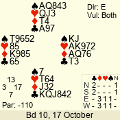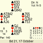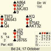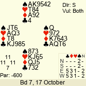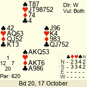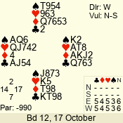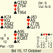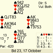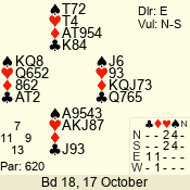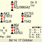 | 3 NT | W | +1 | -630 | 7 | 11 - 12 | 12 | 11 |