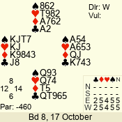 | 3 NT | W | +1 | -630 | 8 | 05 - 08 | 10 | 5 |