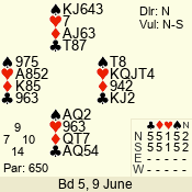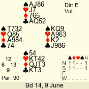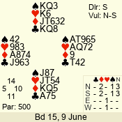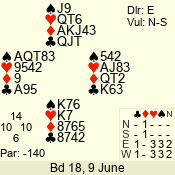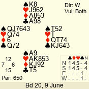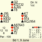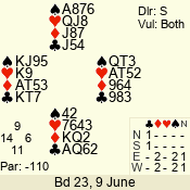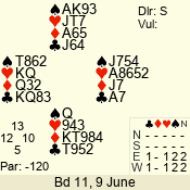 | 2 NT | S | +1 | 150 | Q | 09 - 01 | 1 | 1 |