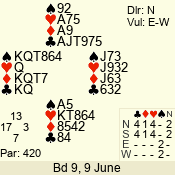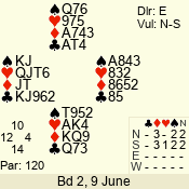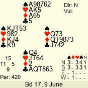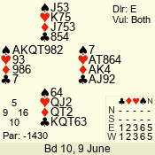 | Con | Dc | Res | Score | Ld | Pairs | Rd | Tbl | 4  | S | = | 420 | 2 | 04 - 03 | 5 | 5 |