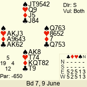 | Con | Dc | Res | Score | Ld | Pairs | Rd | Tbl | 4  | S | +1 | 650 | 6 | 09 - 07 | 7 | 1 |