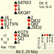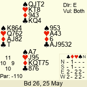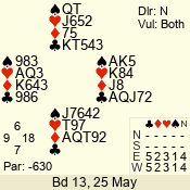 | 3 NT | E | +1 | -630 | 5 | 02 - 02 | 1 | 2 |