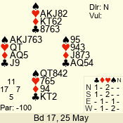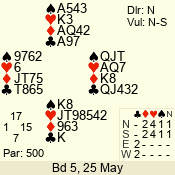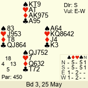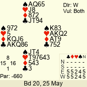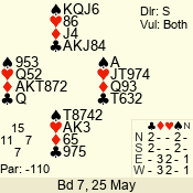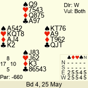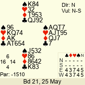 | 2 NT | S | +3 | 210 | Q | 11 - 11 | 1 | 11 |