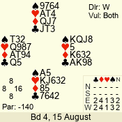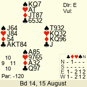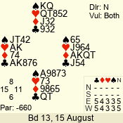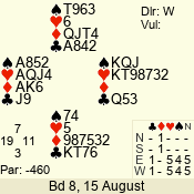| 3 NT | W | +1 | -430 | J | 06 - 04 | 3 | 6 |