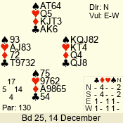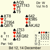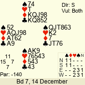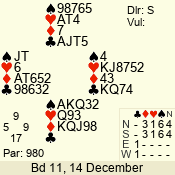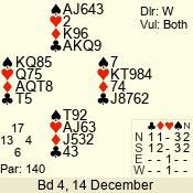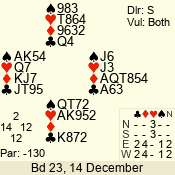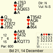 | 3 NT | S | +1 | 430 | 6 | 04 - 03 | 21 | 4 |