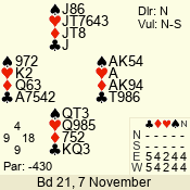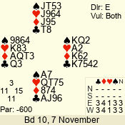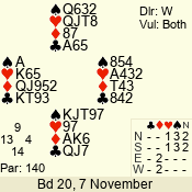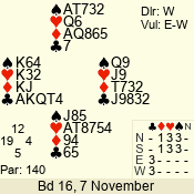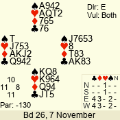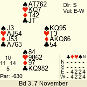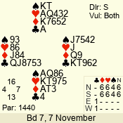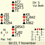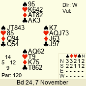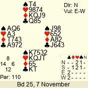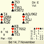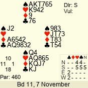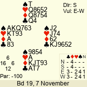 | 3 NT | S | -1 | -50 | 4 | 07 - 11 | 10 | 7 |
