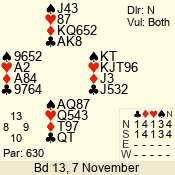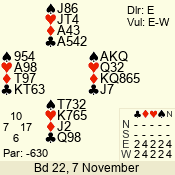 | 3 NT | E | +1 | -630 | 8 | 12 - 09 | 4 | 12 |