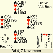 | 3 NT | W | +2 | -460 | J | 04 - 10 | 8 | 4 |