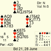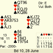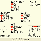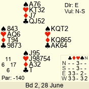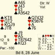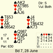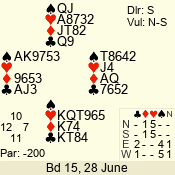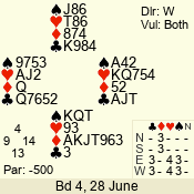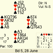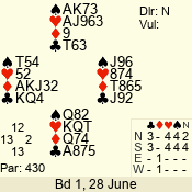 | 3 NT | S | +1 | 430 | A | 05 - 12 | 10 | 5 |