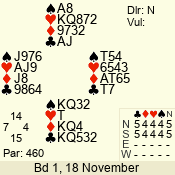 | 3 NT | S | +1 | 430 | 4 | 04 - 08 | 13 | 4 |