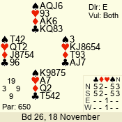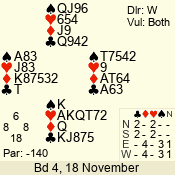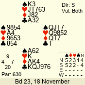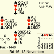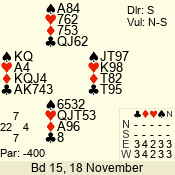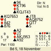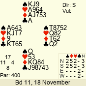| 3 NT | S | +1 | 430 | 4 | 11 - 06 | 6 | 11 |