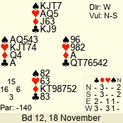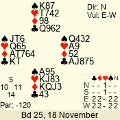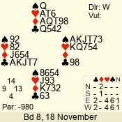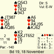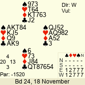 | 3 NT | W | +1 | -430 | J | 04 - 05 | 11 | 4 |