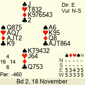 | 3 NT | W | +2 | -460 | J | 02 - 10 | 13 | 2 |