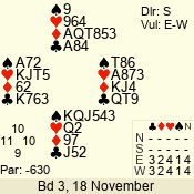 | 3 NT | S | +1 | 630 | 4 | 10 - 08 | 3 | 10 |