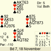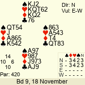 | 3 NT | S | +1 | 430 | 4 | 07 - 09 | 10 | 7 |