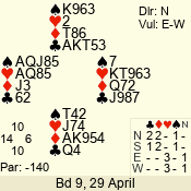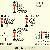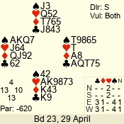 | Con | Dc | Res | Score | Ld | Pairs | Rd | Tbl | 4  | S | = | 130 | A | 06 - 09 | 10 | 6 |
