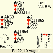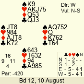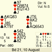 | 3 NT | E | +1 | -430 | J | 06 - 04 | 3 | 6 |