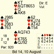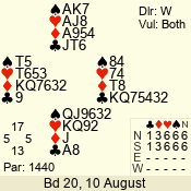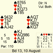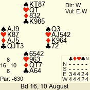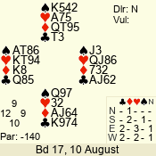| 3 NT | W | +1 | -630 | 7 | 08 - 03 | 12 | 8 |