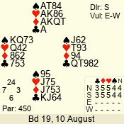 | Con | Dc | Res | Score | Ld | Pairs | Rd | Tbl | | 4 NT | N | +2 | 690 | 4 | 10 - 01 | 12 | 10 |