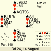 | Con | Dc | Res | Score | Ld | Pairs | Rd | Tbl | 2  | S | +1 | 140 | K | 01 - 02 | 5 | 1 |