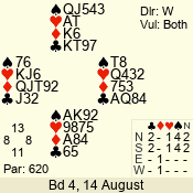 | Con | Dc | Res | Score | Ld | Pairs | Rd | Tbl | 4  | S | = | 620 | 5 | 04 - 01 | 4 | 4 |