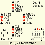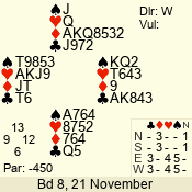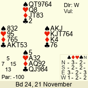 | 3 NT | S | -1 | -100 | Q | 08 - 05 | 4 | 8 |
