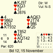 | 3 NT | W | +1 | -630 | 4 | 06 - 12 | 8 | 6 |