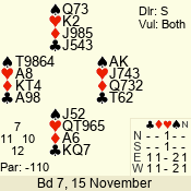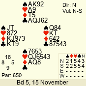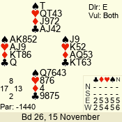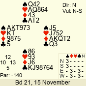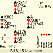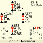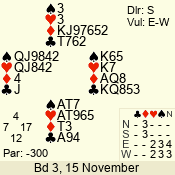 | 3 NT | E | +3 | -690 | 2 | 13 - 10 | 4 | 13 |