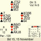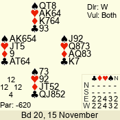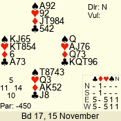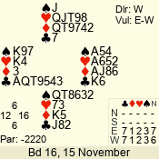 | 3 NT | W | +1 | -630 | 8 | 02 - 04 | 12 | 2 |