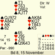 | 3 NT | W | +3 | -690 | 4 | 10 - 04 | 7 | 10 |