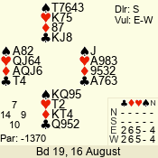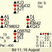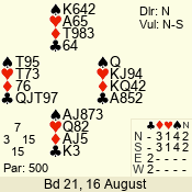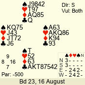 | 3 NT | W | +1 | -630 | 2 | 07 - 03 | 5 | 7 |