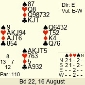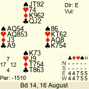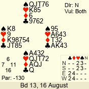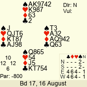 | 3 NT | W | +1 | -630 | 3 | 02 - 08 | 3 | 2 |