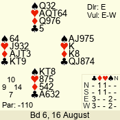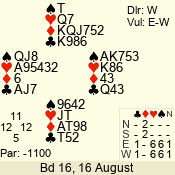 | 3 NT | W | +1 | -630 | 3 | 06 - 01 | 6 | 6 |