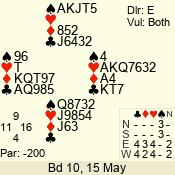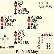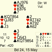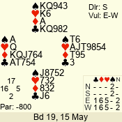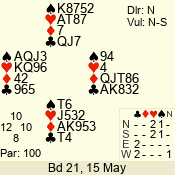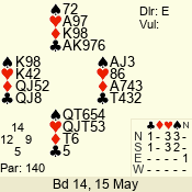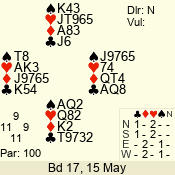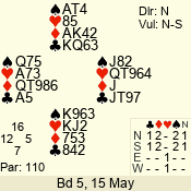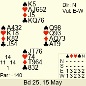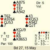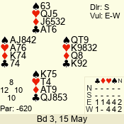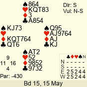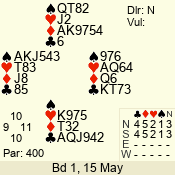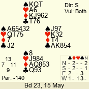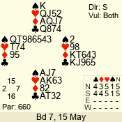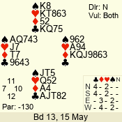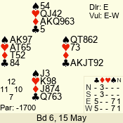 | 3 NT | W | +1 | -630 | 3 | 07 - 03 | 5 | 7 |