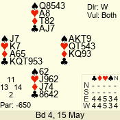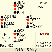 | 3 NT | W | +1 | -630 | T | 08 - 05 | 4 | 8 |