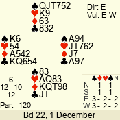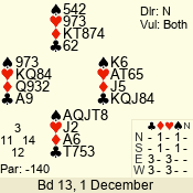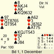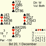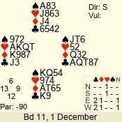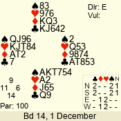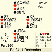 | 3 NT | W | +1 | -630 | 4 | 01 - 01 | 12 | 1 |