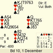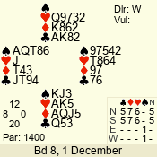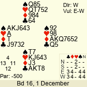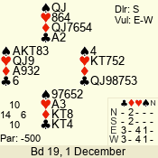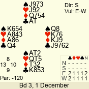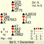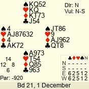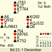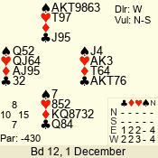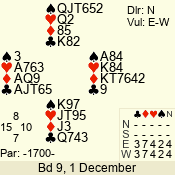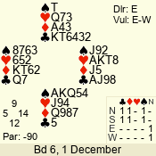 | 3 NT | W | +1 | -430 | 3 | 09 - 04 | 6 | 9 |