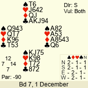 | Con | Dc | Res | Score | Ld | Pairs | Rd | Tbl | | 6 NT | S | = | 990 | J | 06 - 06 | 12 | 6 |