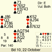 | 3 NT | E | +3 | -690 | 2 | 02 - 05 | 4 | 2 |