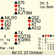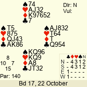 | Con | Dc | Res | Score | Ld | Pairs | Rd | Tbl | 1  | S | +2 | 140 | A | 04 - 05 | 6 | 4 |