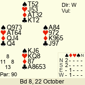 | 3 NT | W | +3 | -690 | 8 | 01 - 03 | 5 | 1 |
