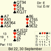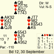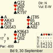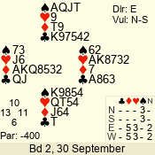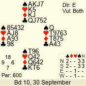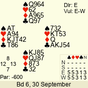 | 3 NT | E | +1 | -630 | 9 | 03 - 03 | 1 | 3 |