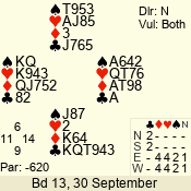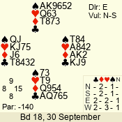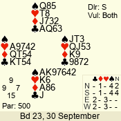 | 3 NT | S | +1 | 430 | J | 07 - 04 | 4 | 7 |
