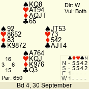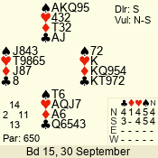 | Con | Dc | Res | Score | Ld | Pairs | Rd | Tbl | 4  | S | +1 | 650 | A | 04 - 09 | 5 | 4 |