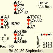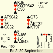 | 3 NT | S | -2 | -200 | 8 | 04 - 01 | 4 | 4 |