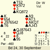 | 3 NT | E | +2 | -460 | 7 | 04 - 09 | 5 | 4 |