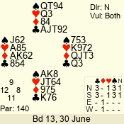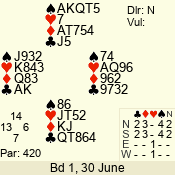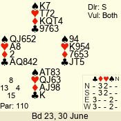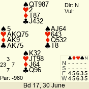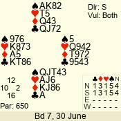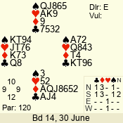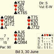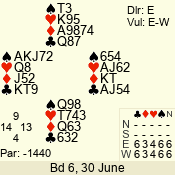 | 3 NT | E | +1 | -630 | 3 | 07 - 04 | 4 | 7 |